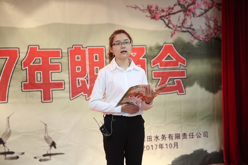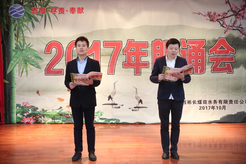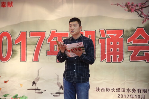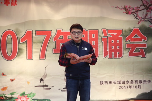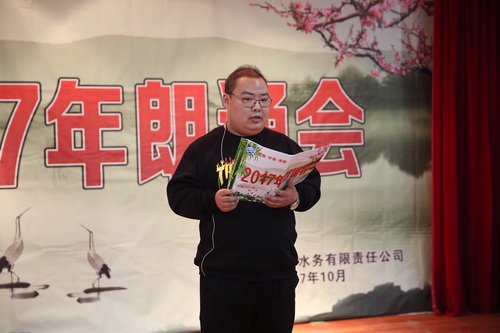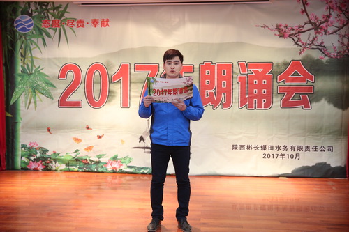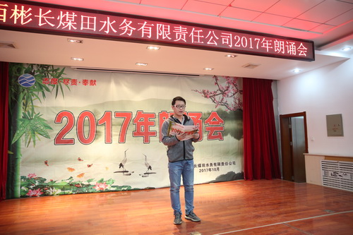 為豐富職工的業(yè)余文化生活,鼓勵職工閱讀,10月31日下午,公司在多功能廳舉辦2017年朗誦會(huì ),共有16名選手登臺朗誦。朗誦會(huì )以歌頌黨、歌頌祖國、傳播社會(huì )正能量、弘揚水利事業(yè)、贊美美好生活為主題,充分展現了彬長(cháng)水務(wù)人朝氣蓬勃的活力和積極向上的良好風(fēng)貌。